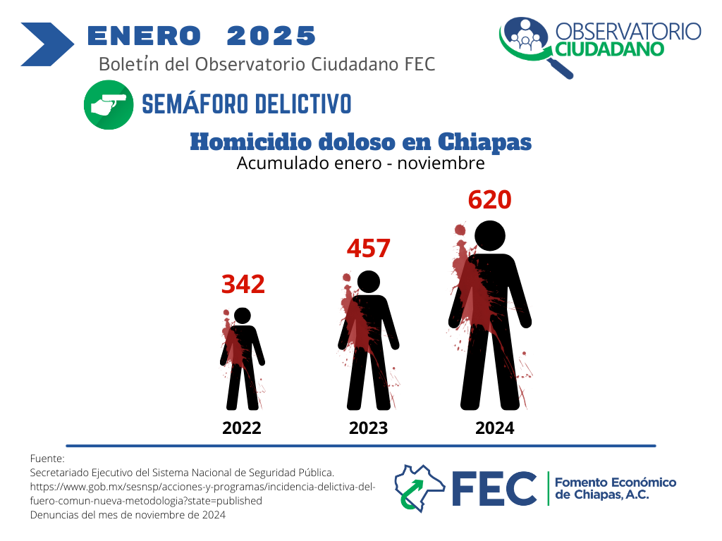 Evolución del homicidio doloso en Chiapas enero 2025 |