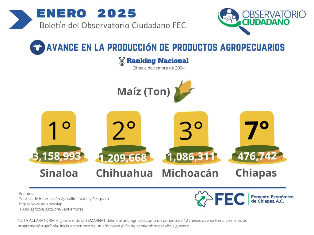 Ranking nacional de producción de maíz enero 2025 |