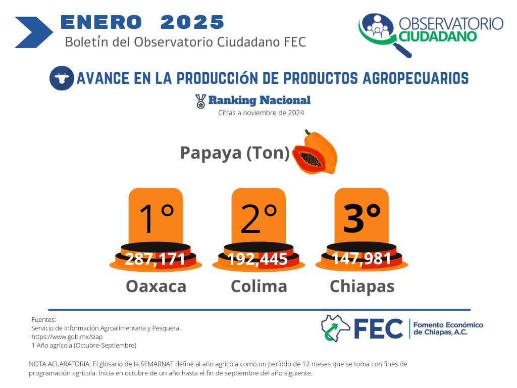 Ranking nacional de producción de papaya enero 2025 |