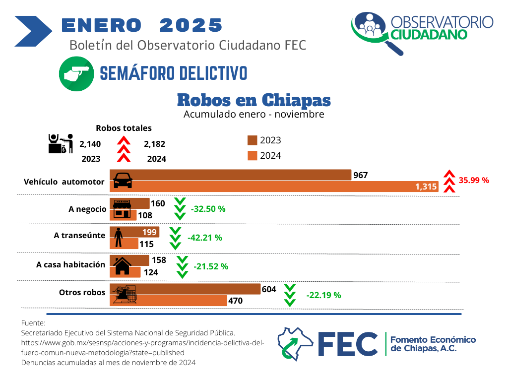 Robos con mayor incidencia en Chiapas enero 2025 |