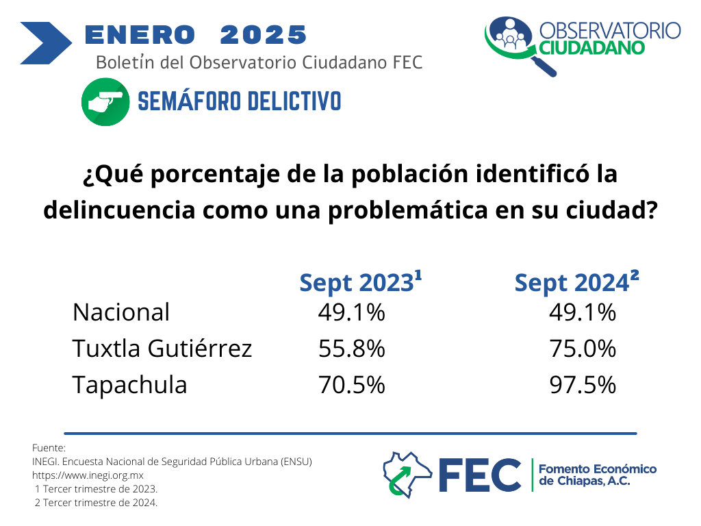 Percepción sobre la delincuencia en Chiapas enero 2025 |