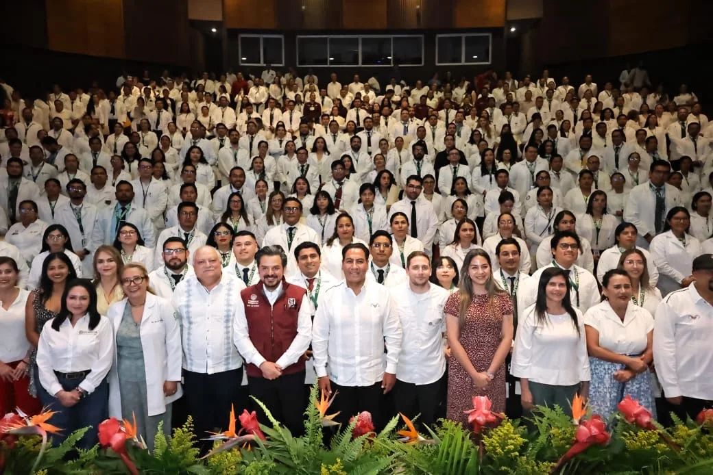 El gobernador de Chiapas, Eduardo Ramírez Aguilar, y el director general del Instituto Mexicano del Seguro Social (IMSS), Zoé Robledo, dieron la bienvenida a 371 médicos especialistas que se incorporan a laborar en hospitales de la institución en zonas urbanas y rurales, quienes fueron contratados en la jornada de reclutamiento 2026 para fortalecer la atención médica de alta especialidad en el estado.