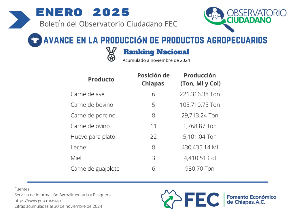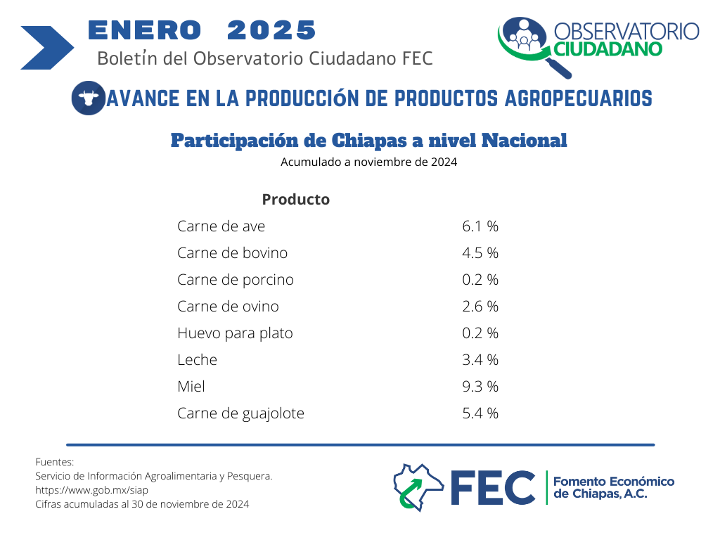 Análisis de productos pecuarios en Chiapas enero 2025 |