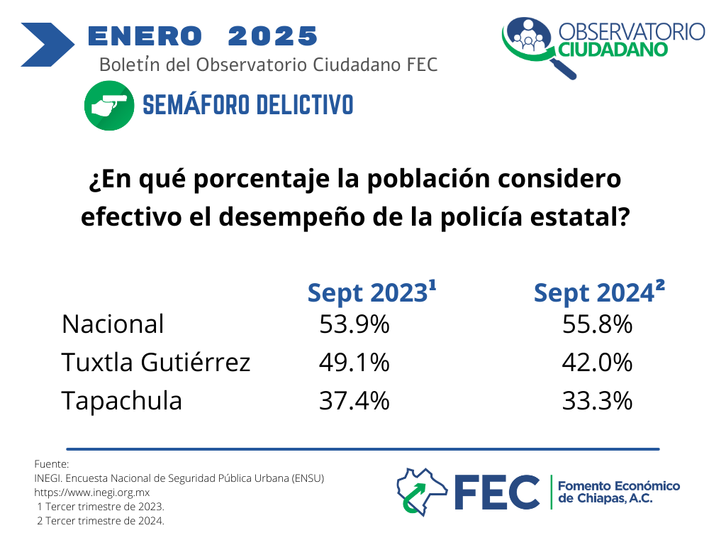 Percepción sobre el desempeño de la policía estatal en Chiapas enero 2025 |